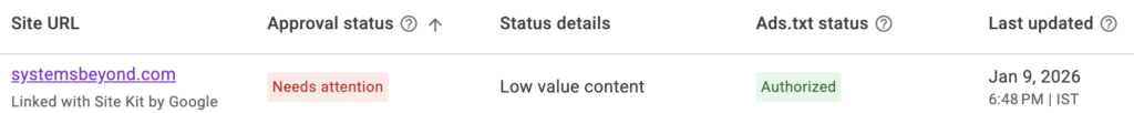 • AdSense status: Rejected (Low Value Content)