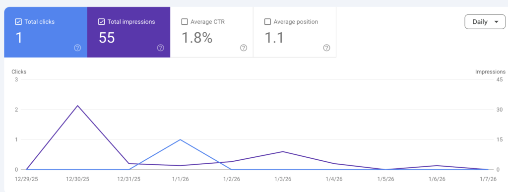 • Google Search Console clicks: 1